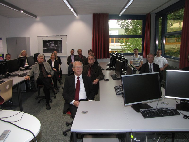 Selbst Platz nehmen an modernen CAD-Arbeitsplätzen dürften Oberbürgermeister Dr. Ivo Holzinger, Bürgermeisterin Claudia Knoll, CRB-Fraktionsvorsitzender Wolfgang Courage und Berufsschulreferent Hans Ferk neben Vertretern von Berufsschulen, Schülerschaft, Stadtverwaltung sowie der Presse. Der kommissarische Leiter der Technikerschule, Georg Stadler, stellte gemeinsam mit Schulleiter Hans-Peter Gneiser die neueste Errungenschaft der Schullandschaft im Memminger Westen vor: die Staatliche Fachschule für Maschinenbautechnik, vielen als ‚Technikerschule’ ein Begriff.