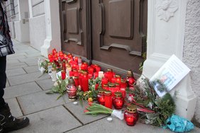 Den ganzen Tag über kamen Bürgerinnen und Bürger in die Rathaushalle, um ihre Trauer durch einen Eintrag im ausliegenden Kondolenzbuch zum Ausdruck zu bringen. Vor dem Rathausportal legten die Memmingerinnen und Memminger Kerzen, Fotos und Blumen ab.