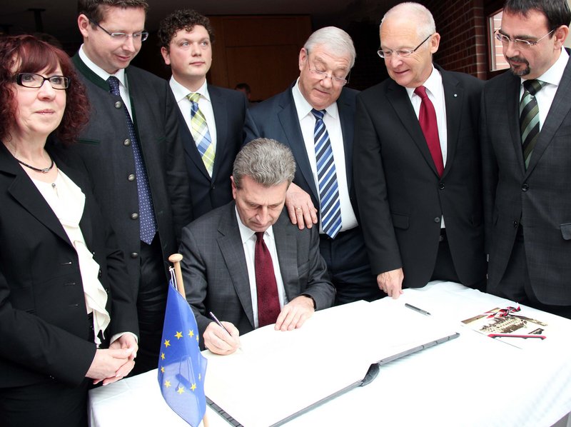Hoher Besuch in Memmingen: Baden-Württembergs ehemaliger Ministerpräsident Günther Oettinger hat sich jetzt ins Goldene Buch der Stadt eingetragen. Trotz Eisglätte nahm der heutige EU-Energiekommissar den langen Weg aus Brüssel auf sich.