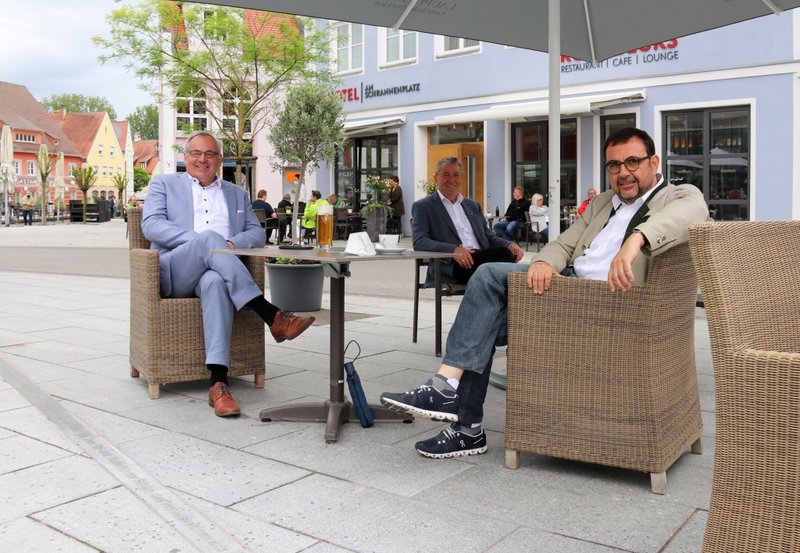 Oberbürgermeister Manfred Schilder und Staatsminister Klaus Holetschek haben mit ihrem Besuch bei ihrem Stadtratskollegen Uwe Rohrbeck die Biergartensaison inoffiziell eröffnet. Frisch getestet haben sich die beiden mit Hilfe der Luca-App eingecheckt und genießen ihre Getränke im Freien. Beide freuen sich über diesen Schritt, dem ab Montag weitere folgen können. „Dank der hohen Impfquote und der Umsicht der Bevölkerung haben wir diese niedrigen Inzidenzwerte, das freut mich sehr“, sagt Gesundheitsminister Klaus Holetschek. Oberbürgermeister Manfred Schilder ergänzt: „Wir alle wollen, dass es noch weitere Erleichterungen gibt, deshalb sollten wir jetzt nicht unvernünftig werden!“ Für eine leichte Kontaktnachverfolgung arbeiten auch die Einrichtungen der Stadt Memmingen mit der Luca-App, die datenschutzkonform mit dem Memminger Gesundheitsamt korrespondiert.