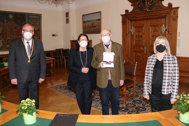 32 Jahre lang hat sich Günther Bayer in der Heimatpflege um das kulturelle Leben in Memmingen besonders verdient gemacht und wurde nun, bei seinem Abschied aus dem Amt des Heimatpflegers, von Oberbürgermeister Manfred Schilder mit dem Stadtsiegel der Stadt Memmingen ausgezeichnet. „Es ist mir eine Ehre und Freude, Ihnen diese Auszeichnung zu verleihen. Sie haben sich im Bereich Baudenkmalpflege und Stadtbildgestaltung über drei Jahrzehnte hinweg für einen konsequenten Denkmalschutz zum Erhalt der historischen Altstadt eingesetzt“, betonte der Oberbürgermeister bei einer pandemiebedingt kleinen Feierstunde im Rathaus.