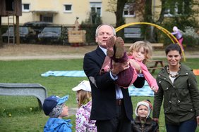 Gelbe Margeriten, pinkfarbene Kartäusernelken und leuchtende Wiesenflockenblumen werden in den kommenden Monaten und Jahren nicht nur auf der Spielwiese der Kindertageseinrichtung in der Westermannstraße erblühen, wo Kinder zusammen mit Oberbürgermeister Dr. Ivo Holzinger und Sparkassenchef Thomas Munding die ersten Samen aussäten, sondern auch in anderen Kindertagesstätten und Krippen, Privatgärten, Brachflächen und auf Verkehrsinseln. Nach dem der Fokus letztes Jahr auf den Schulen lag, liegt dieses Jahr der Schwerpunkt der Aktion "Unsere Stadt blüht auf" bei den Kindertageseinrichtungen.