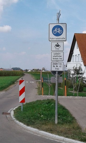 Die vorhandenen Fahrradstraße Postweg zwischen Amendingen und Steinheim ist jetzt nur noch für Fahrräder und motorisierte Zweiräder zugelassen. Mehrspurige Kraftfahrzeuge, also Pkw und Lkw, dürfen die Fahrradstraße ab sofort nicht mehr befahren, der landwirtschaftliche Verkehr bleibt wie bisher zugelassen. „Die Beschränkung wurde erforderlich, weil der Postweg sehr schmal ist und der motorisierte Verkehr mehrspuriger Fahrzeuge im Begegnungsfall den nach der Straßenverkehrsordnungs Novelle vom Frühjahr geregelten Mindestabstand zum Überholen von Radfahrern und Fußgängern von mindestens 1,5 Meter innerorts und 2 Meter außerorts auf der gesamten Länge des Postwegs nicht einhalten kann. Anders verhält es sich bei deutlich schmäleren Mofas, Mopeds, Rollern und Motorrädern. Der Sicherheit von Radfahren kommt gerade in Fahrradstraßen eine besonders hohe Bedeutung zu“ erklärt Straßenverkehrsamtsleiterin Birgit Haldenmayr. Zudem erzeugt auch hier das regelmäßige Ausweichen in die Bankette einen hohen straßenbaulichen Unterhaltungsaufwand. Mit der Donaustraße und Heimertinger Straße steht in unmittelbarer Nähe eine leistungsfähige Alternativstrecke zur Verfügung.