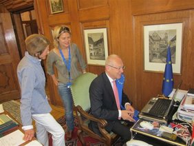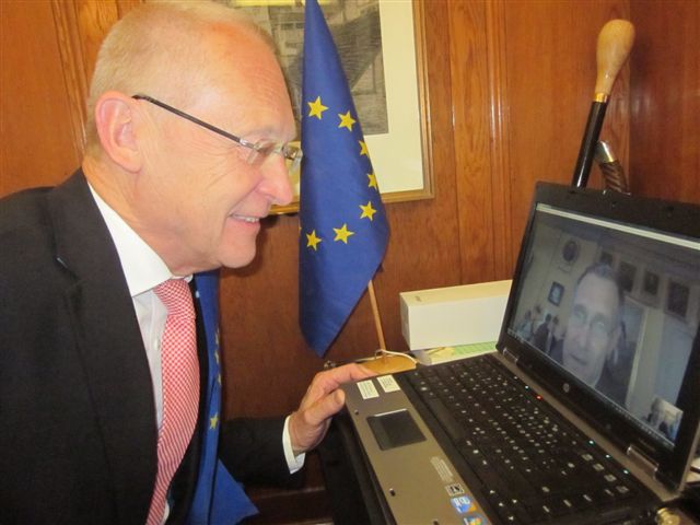 Anlässlich des Europatags, der jedes Jahr am 09. Mai stattfindet, trafen sich Oberbürgermeister Dr. Ivo Holzinger und Oberbürgermeister Franck Montaugé zu einer Videokonferenz.