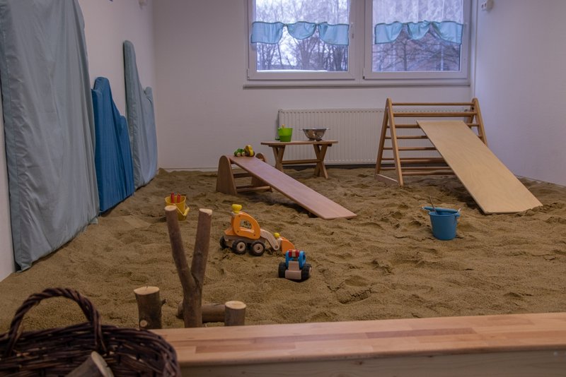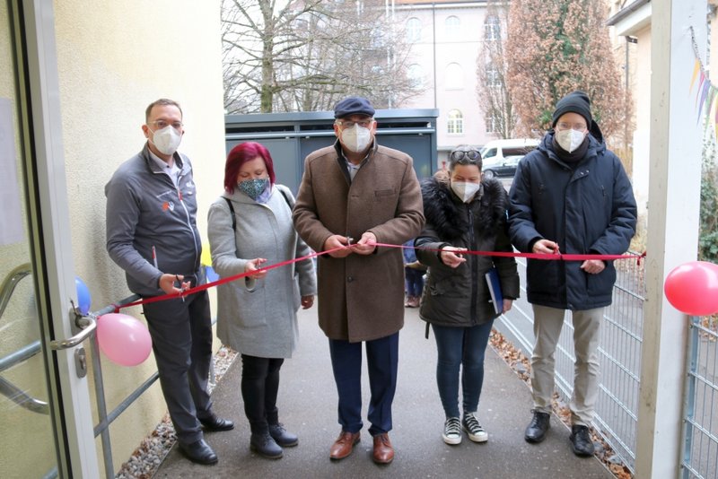 Durch ein lustig wehendes Fähnchen-Spalier der Kinder geht es für Oberbürgermeister Manfred Schilder zuerst, bevor ganz offiziell noch ein Band durchschnitten wird. Damit ist die Kinderkrippe des Fröbel-Kindergartens, die in einem ehemaligen Nebengebäude der Alten Realschule untergebracht ist, nun feierlich eröffnet. Wobei die 24 Mädchen und Buben im Alter von einem bis drei Jahren die neuen Räume eigentlich schon seit Herbst bezogen haben. Bernhard Hölzle, Leiter des KiTa-Amts, berichtet: „Aus dem Gebäude wurde mit sehr überschaubaren Kosten von rund 280.000 Euro sehr viel gemacht. Es wurde bei der Ausstattung sehr kostenbewusst, nachhaltig und ressourcenschonend geplant und gebaut.“ Die Leiterin der Kindertagesstätte Karin Lyra freut sich, dass trotzdem viele Ideen und Wünsche des Teams umgesetzt werden konnten, wie zum Beispiel das Sandzimmer: „Hier haben die Krippenkinder die Möglichkeit besondere haptische und motorische Erfahrungen zu machen. Hinzu kommt, dass dieser Sand immer sehr hygienisch bleibt“. Laut Auskunft von Bernhard Hölzle, ist dies eine in Schwaben einzigartige Idee im KiTa-Bereich.