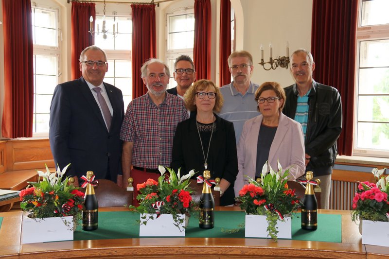 Des Weiteren wurden folgende städtische Mitarbeiterinnen und Mitarbeiter für ihr vier Jahrzehnte andauerndes Engagement ausgezeichnet. Georg Daufratshofer, der vielen als Musiklehrer und stellvertretender Leiter der Sing- und Musikschule bekannt ist. Georg Hasel, der seit 1979 in den Memminger Wäldern als Forstwirt arbeitet. Rita Mittl, die die gesamten 40 Jahre auf der Dialyse Station im Klinikum gearbeitet hat. Sowie Walter Müller, der seit Ausbildungsbeginn im Jahr 1978 ebenfalls im Klinikum arbeitet und zwar als Koch. Und Rudolf Wagner, der als Verwaltungsangestellter in der Kanzlei angefangen hat und seit 1980 in der Besoldungsstelle angestellt ist.