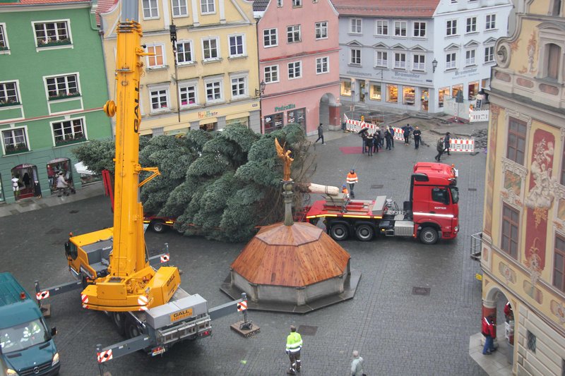 In diesem Jahr stiftete die Familie Josef Häring aus Memmingen den rund 18 Meter hohen Baum auf dem Marktplatz.
