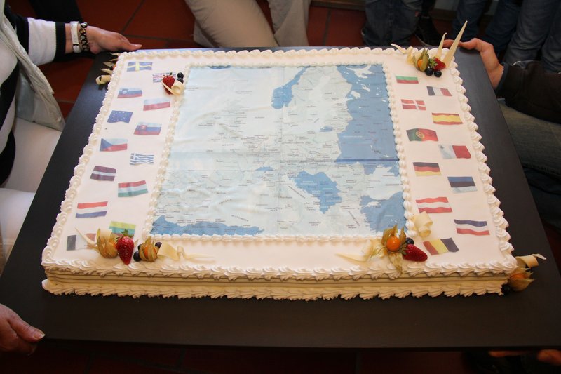 Als krönenden Abschluss bekamen die Kinder eine große Torte dekoriert mit der Europakarte und allen Fahnen Europas sowie vielen Spielsachen.