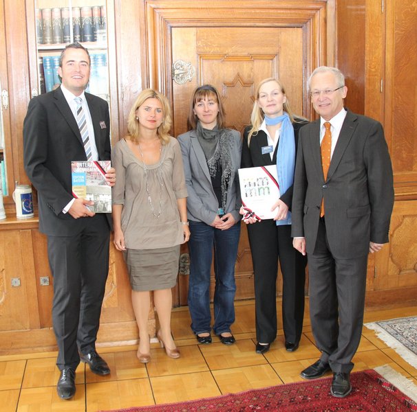 Oberbürgermeister Dr. Ivo Holzinger begrüßte die neue Geschäftsführerin der Karstadt Niederlassung Memmingen, Ramona Ettrich, in seinem Amtszimmer und hieß sie in der Maustadt herzlich willkommen. Der bisherige Karstadt-Filialleiter, Robin Trebbe, verlässt Memmingen nach gut eineinhalb Jahren und geht nach Singen am Hohentwiehl/Bodensee. Er stellt sich dort einer neuen Herausforderung im Karstadt Konzern und begleitet den im Jahr 2012 startenden Modernisierungsprozess in der Singener Filiale.
