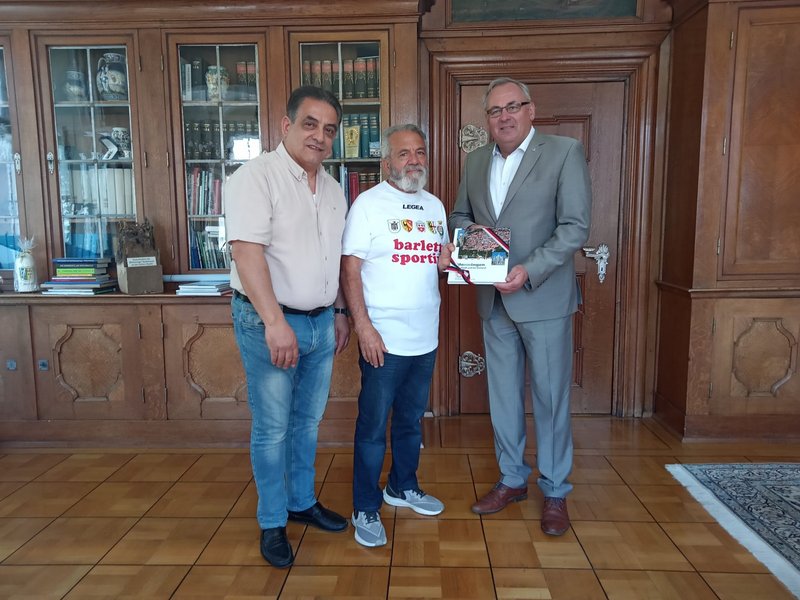 Zu einem kurzen Besuch empfing Oberbürgermeister Manfred Schilder Pasquale Caputo im Memminger Rathaus. Caputo besuchte Memmingen als eine von den Stationen, die sein Vater Francesco als Kriegsgefangener von 1943 bis 1945 durchlief. Über die Internierungslager Moosburg und Memmingen Stalag VIIb kam er schließlich nach Kaufbeuren, wo er in der Munitionsfabrik der Dynamit AG auf dem Gebiet des heutigen Stadtteils Neugablonz Zwangsarbeit leisten musste. Als er 1945 von den Amerikanern befreit wurde, trat er den Heimweg nach Barletta, einer Stadt bei Bari im süditalienischen Apulien zu Fuß an.
