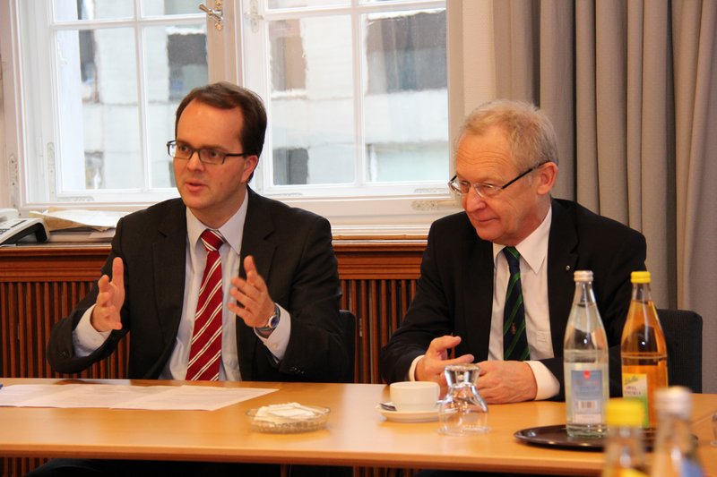 „Ich habe schon einige Fraktionsvorsitzende im Amtszimmer begrüßt“, blickte Deutschlands dienstältester Oberbürgermeister auf zahlreiche Besuche von Landespolitikern in seiner nunmehr dreißigjährigen Amtszeit zurück. Ein Thema habe ihn ebenfall die ganzen Jahre begleitet: Forderungen nach Wegfall der Gewerbesteuer. Hiergegen bezog der Oberbürgermeister und Landesvorsitzender der Sozialdemokratischen Gemeinschaft für Kommunalpolitik klar Position: „Mein einzigster Weihnachtswunsch ist, dass Sie da nicht nachgeben“, so Dr. Holzinger. Eine Abschaffung oder Aufweichung der Gewerbesteuer bedeute eine hohe Mehrbelastung der Bürger. Er teile Dr. Holzingers Wunsch voll umfangreich, so der Gast aus München.