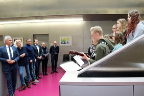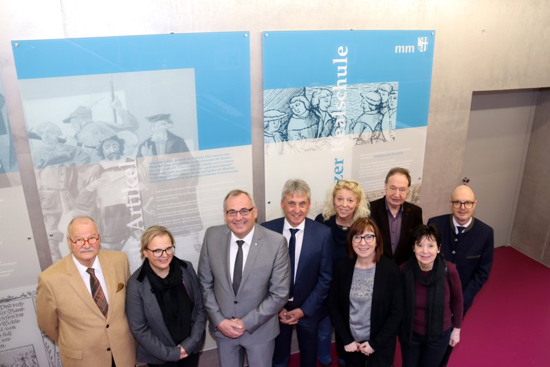 Auch Herbert Müller, Vorsitzender des Kuratoriums „Memminger Freiheitspreis 1525“, dankte der Stifterfamilie und genauso der Schule für ihr Engagement, die Anliegen der Bauern von 1525 und deren zeitlose Forderung nach Freiheit und Menschenrechten, den heutigen Schülerinnen und Schülern zu vermitteln. „Durch die Schautafeln regt die Schule an, über Freiheit nachzudenken“, würdigte Herbert Müller.