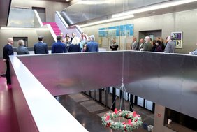 „Freiheit, Menschenrechte und Bildung hängen ganz eng zusammen“, erläuterte Schulleiter Harald Rehklau. „Es ist wichtig, Bildung und Werte zu vermitteln, damit Freiheits- und Menschenrechte ins Bewusstsein rücken. Viele Rechte sind immer noch nicht überall erreicht, beispielsweise Rechte der Frauen“, betonte Rehklau. „Wir freuen uns, dass der Namengeber unserer Schule jetzt einen Platz in unserem Schulgebäude hat. Die Schautafeln sind ein echter Hingucker.“ Rehklau richtete seinen Dank an die Familie Brey, die die Schautafeln gestiftet hat.