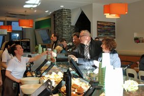 Im Naschhaus Häussler am Schrannenplatz gab Oberbürgermeister Manfred Schilder den Startschuss für die Einführung des "Allgäu-Bechers" der Firma Recup in Memmingen. Den Pfandbecher für heiße Getränke zum Mitnehmen gibt es ab sofort für einen Euro Pfand auch in Kempten und im Landkreis Unterallgäu bei allen teilnehmenden Betrieben. "Das ist ein wichtiger Beitrag zur Müllvermeidung und ich bin sicher, die Vorreiter, die den Allgäu-Becher anbieten, werden bald Nachahmer finden", sagte Schilder.