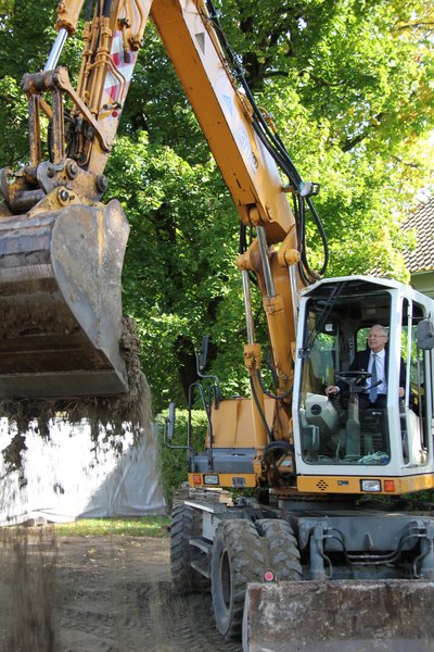 Zuvor hatte Oberbürgermeister Dr. Ivo Holzinger mit einem Bagger das Baugelände vorbereitet.