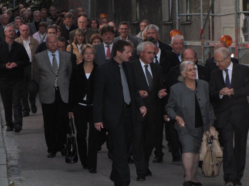 Die festliche Einweihung der Synagoge am 8. September 1909 sei ein besonderes Ereignis für die jüdische Gemeinde und für die Stadt gewesen, erinnert Oberbürgermeister Dr. Ivo Holzinger in seiner Ansprache. „Sie markierte einen Höhepunkt der guten Beziehungen zwischen Juden und Christen in Memmingen.“ Die jüdischen Mitbürger hätten zur wirtschaftlichen Blüte der Stadt erfolgreich beigetragen. „Diese gute Integration sollte keine 30 Jahre Bestand haben. Die tragische Geschichte der Memminger Synagoge macht uns klar, dass gute Integration kein auf alle Zeit zementierter Zustand ist“, mahnt das Stadtoberhaupt. Es gelte stets, sich weiterhin für das gute Verhältnis zu den vielen ausländischen Mitbürgern der Stadt einzusetzen.