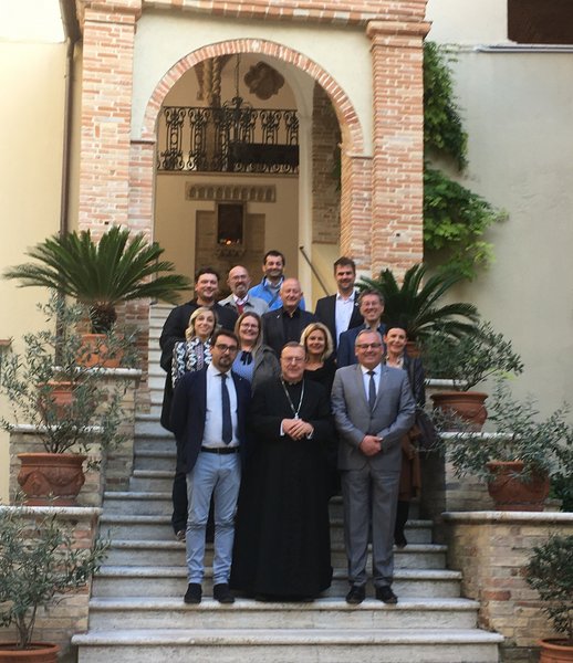 Ein besonderer Höhepunkt des Aufenthaltes war die Begrüßung der Memminger Delegation durch Bischof Michele Seccia in seinen Räumen. Seccia berichtet, dass im kommenden Jahr ein internationaler Jugendaustausch geplant sei, zu dem er auch die Memminger Jugendlichen sehr herzlich nach Teramo einlade. Insgesamt hält der Geistliche den Austausch unter den jungen Menschen, die die Zukunft Europas seien, für sehr wichtig. So bedauert er sehr, dass der Schüleraustausch zwischen den beiden Städten aktuell nicht aktiv sei. Dieser müsse dringend erneuert werden.