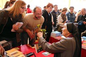 "Für uns ist Lilliane Juchli das, was für andere Robbie Williams ist", schwärmt eine begeisterte Zuhörerin von der 80-jährigen Ordensschwester, für deren Autogramm viele im Anschluss an den Vortrag Schlange stehen.