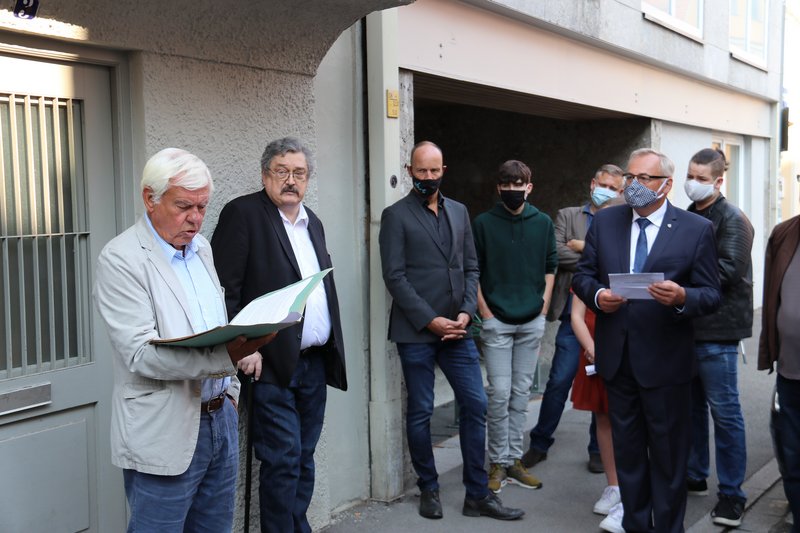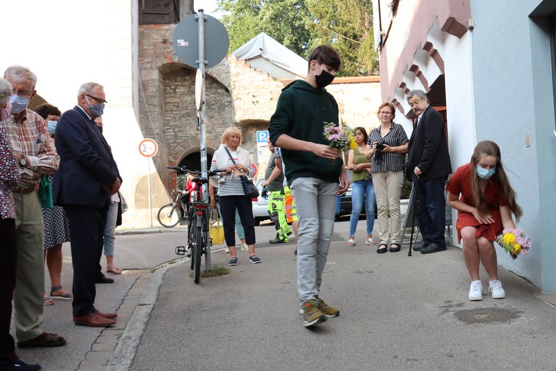115 „Stolpersteine“ erinnern in Memminger Straßen bereits an Opfer der nationalsozialistischen Gewaltherrschaft. Weitere Gedenksteine, vor allem für Opfer von „NS-Euthanasie“, also von Morden der Nationalsozialisten an Kranken, Patienten der Psychiatrie und Menschen mit Behinderung, wurden nun auf Einladung des Vereins "Stolpersteine in Memmingen" von Schülerinnen und Schülern der Staatlichen Realschule verlegt. „Ich freue mich ganz besonders, dass junge Menschen Verantwortung übernehmen und das Gedenken an diese dunkle Zeit unserer Geschichte aufrechterhalten“, würdigte Schirmherr Oberbürgermeister Manfred Schilder. Die 7. Verlegung von Stolpersteinen in Memmingen wurde geleitet von Helmut Wolfseher, dem langjährigen Vorsitzenden des Vereins „Stolpersteine in Memmingen“.