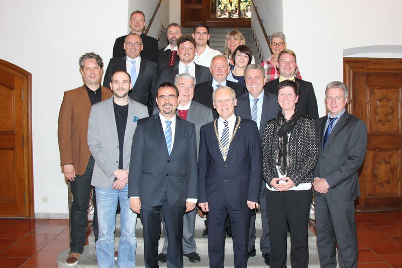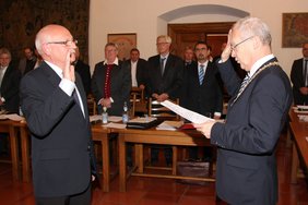 Oberbürgermeister Dr. Ivo Holzinger nahm dem neuen Dritten Bürgermeister und den neuen Stadträtinnen und Stadträten