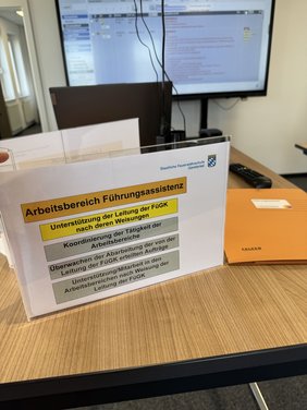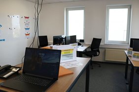 In den Büroräumen neben dem Lager, stehen den Hilfsorganisationen sowie der Führungsgruppe Katastrophenschutz (FüGK) rund 300 Quadratmeter zur Verfügung. Die Büros sind mit Rechnern, Funk, Smartboards und speziellen Einsatzplanungshilfen ausgestattet. Für mehr Übersichtlichkeit ist der Raum für die FüGK mit einem Stehtisch für den Einsatzleiter ausgestattet.