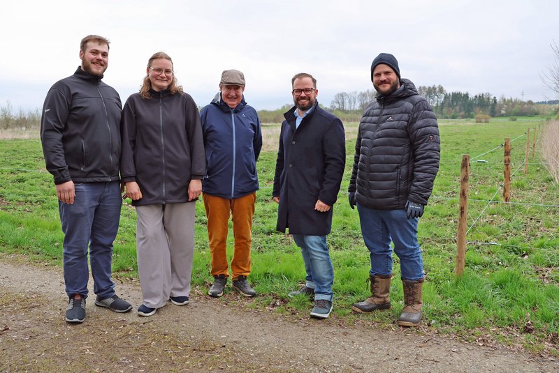 Beim Termin konnten sich Oberbürgermeister Jan Rothenbacher und Dritter Bürgermeister Dr. Hans-Martin Steiger ein Bild von den positiven Auswirkungen der Büffelbeweidung machen. Und direkt von Familie Robrook erfahren, welche Arbeiten auf der Fläche anfallen und wie die Pläne für die Zukunft sind.