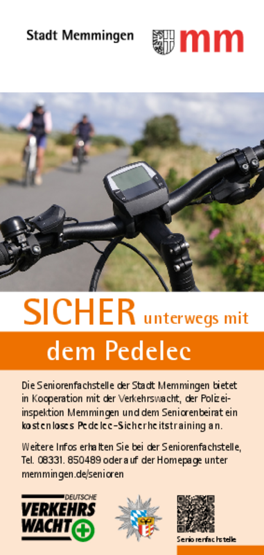 Auch im kommenden Jahr möchten wir Ihnen wieder das beliebte Fahrsicherheitstraining auf dem Pedelec (E-Bike) anbieten. Das Angebot wird gemeinsam mit der Verkehrswacht, der Polizeiinspektion Memmingen und dem Seniorenbeirat durchgeführt. Die Übungsnachmittage finden jeweils in einer überdachten Halle statt. In kleinen Gruppen haben Sie die Möglichkeit, verschiedene Fahr- und Bremssituationen zu üben. Außerdem wird Ihnen gezeigt, wie Sie mit wenigen Handgriffen die Sicherheit Ihres Pedelecs prüfen und individuelle Anpassungen für ein sicheres Auf- und Absteigen vornehmen können. Ein Vortrag rundet das Programm ab. Ziel der Veranstaltung ist es, Ihre Fahrsicherheit mit dem Pedelec im Straßenverkehr zu verbessern.