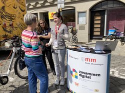 Memmingen gehört zu den 30 Kommunen in Bayern, die im Rahmen des Projekts „zusammen digital“ Beratungstheken einrichten. Die Beratungen finden jeden Dienstag in den Räumlichkeiten des Mehrgenerationenhauses statt (Zangmeisterstr.30 / direkt am Westertor) sowie bei gutem Wetter zusätzlich auf dem Memminger Wochenmarkt statt. Das Beratungsangebot richtet sich an alle Bürgerinnen und Bürger, die im digitalen Bereich noch Unterstützung und Hilfestellungen benötigen. An der Beratungstheke können individuelle Fragen zu den Themen Internet, Smartphone, Computer oder Onlinedienste der Stadtverwaltung gestellt werden.