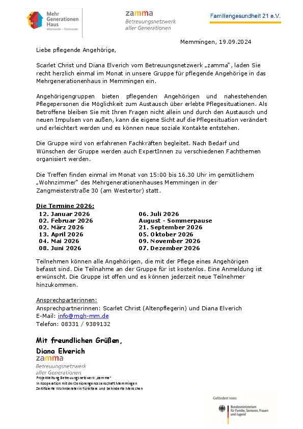 Scarlet Christ und Diana Elverich vom Betreuungsnetzwerk „zamma“ laden einmal im Monat recht herzlich in die Gruppe für pflegende Angehörige in das Mehrgenerationenhaus in Memmingen ein.