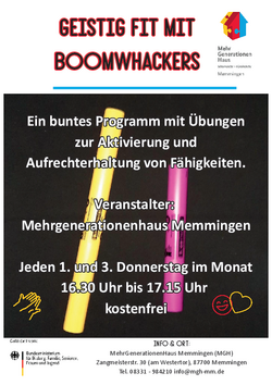 Boomwhackers sind farbige Klangröhren, die ohne musikalische Vorkenntnisse gespielt werden können und sich für Menschen jeden Alters eignen. Durch das Zusammenspiel von Bewegung, Rhythmus und Musik wird das Gehirn auf spielerische Weise angeregt, neue neuronale Verbindungen aufzubauen.