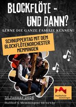 Am Samstag, den 31. Januar 2026 veranstaltet das Blockflötenorchester Memmingen in der Musikschule (Hallhof 5, 87700 Memmingen) von 10 - 14 Uhr ein Schnupperangebot.