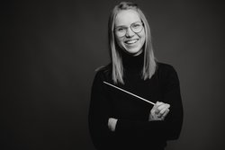 Doreen Donchi Ehrenhuber dirigiert für ihr öffentliches Examenskonzert die Stadtkapelle Memmingen.