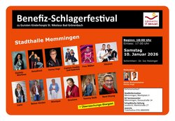 Das große Benefiz-Schlagerfestival zu Gunsten des Kinderhospiz in Bad Grönenbach verspricht ein unvergesslicher Abend voller mitreißender Melodien, strahlenden Künstlern und euphorischer Stimmung zu werden.